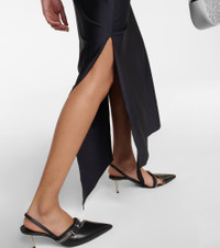 This midi dress from Coperni is designed in a fitted silhouette with a cut-out detail in front and an asymmetrical hem. The subtly ruched bodice is adorned with fabric roses and knot details at the shoulders. Product Details - Closure: self-ties - Made in Poland - Care instructions: dry clean - Designer color name: Black - Material: 20% elastane, 80% polyamide - Embroidery: 100% polyester - Item number: P00719843 Size & Fit - slit length 50cm-19.5"