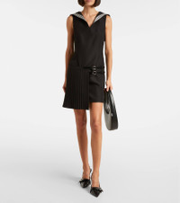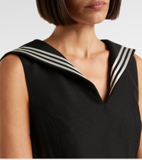 Coperni takes its name after the astronomer Nicolaus Copernicus, whose precise work inspires the brand’s deeply detailed designs. This fitted minidress features a striped, caped collar, a pleated skirt, and cinching belt detailing. Product Details - Material: 100% polyester (recycled) - Care instructions: dry clean - Made in Italy - Designer color name: Black - Item color: black - Lining: 52% acetate, 48% viscose - Contains non-textile parts of animal origin - Hardware color: silver - Collar: V-neck - Attached belt - Item number: P01100752 Size & Fit - True to size - Cinched waist - Non-stretchy fabric - The model seen in the picture is 178cm-5'10" and wearing a size FR 36
