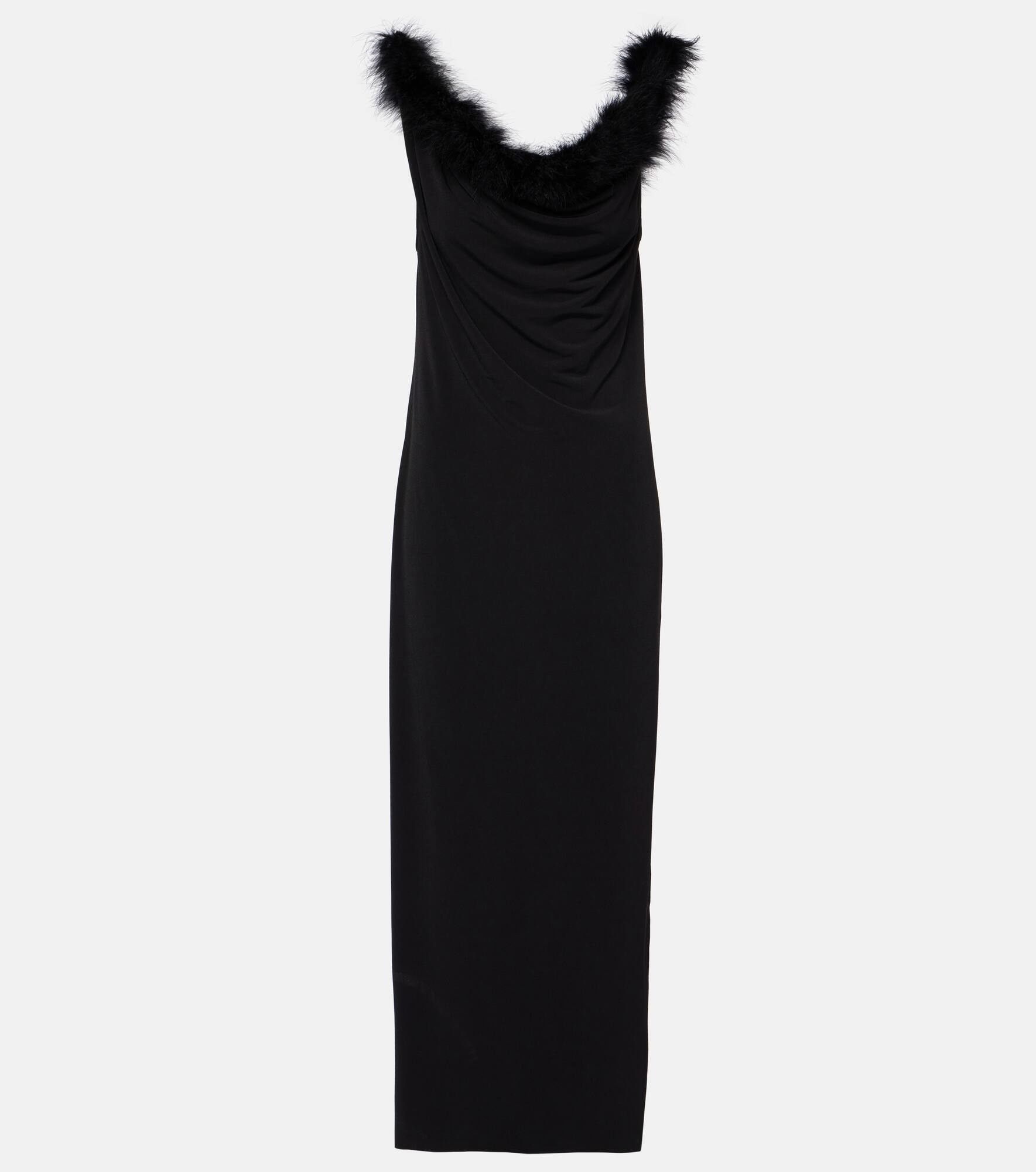 Boa feather-trimmed maxi dress