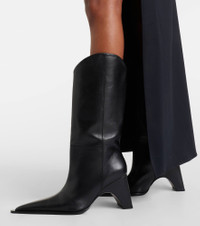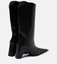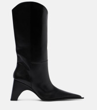 The Bridge cowboy boots from Coperni offer a modern take on a timeless design. Crafted from leather, the angled block heel creates a graceful arch that beautifully complements the foot. Product Details - Upper: calf leather - Lining: leather - Sole: leather insole and sole - Color: black - Toe shape: pointed toe - Made in Spain - Includes: dust bag, shoe box - Designer color name: Black - Item number: P01152142 Size & Fit - True to size - Half sizes please take the next size down - European sizes - 9cm-3.5" heel - 32cm-12.5" shaft height (size EU 38) - 37cm-14.5" shaft width (size EU 38) - shaft width measured on largest part of boot