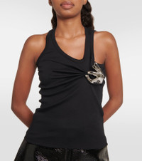 Playful meets tough-luxe in the Emoji tank top from Coperni. The design is crafted from ribbed-knit cotton that gathers at the top with a silver-toned metal embellishment. Product Details - Material: 100% cotton - Care instructions: machine wash at 30 degrees - Made in Portugal - Designer color name: Black - Item number: P00862447 Size & Fit - True to size - Cinched waist - Stretchy fabric - Falls to the hip - The model seen in the picture is 178cm-5'10" and wearing a size XS
