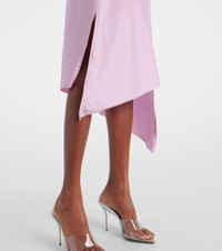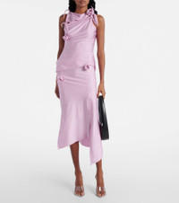 Crafted from satin, this midi skirt from Coperni features a flattering asymmetric hem with side slits. Adorned with floral appliques, this design blends elegance with sculptural detail for a chic finish. Product Details - Material: 80% polyamide, 20% elastane - Care instructions: machine wash at 40 degrees - Made in France - Designer color name: Pale Pink - Item color: pink - Item number: P01026875 Size & Fit - True to size - Stretchy fabric - The model seen in the picture is 178cm-5'10" and wearing a size XS