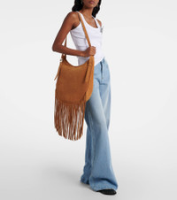Coperni takes its name after the astronomer Nicolaus Copernicus, whose precise work inspires the brand’s deeply detailed designs. This shoulder bag is crafted from suede and complete with fringed detailing. Product Details - Material: leather (suede) - Lining: suede - Made in Italy - Designer color name: Brown - Item color: brown - Adjustable shoulder strap - Closure: zipped top - Hardware color: silver - Item number: P01021254 Size & Fit - Height 31cm-12" - Width 33cm-13" - Max. depth 8,5cm-3.5" - Adjustable shoulder strap - Min. length shoulder strap 76cm-30" - Max. length shoulder strap 88cm-34.5"