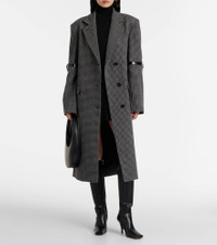 Coperni takes its name after the astronomer Nicolaus Copernicus, whose precise work inspires the brand’s deeply detailed designs. Crafted from houndstooth-patterned wool and cashmere, this straight-fit coat features leather buckle detailing at the sleeves. Product Details - Material: 90% wool, 10% cashmere - Care instructions: dry clean - Made in Ukraine - Designer color name: Grey - Item color: gray - Lining: 100% viscose - Details: 100% leather - Hardware color: silver - Notched lapel - Shoulder pads - Closure: buttoned front - Pockets: flap pockets - Vent: single - Fully lined - Item number: P01100757 Size & Fit - Fits large to size - we recommend trying one size smaller - Shoulder pad inserts - Straight fit - Non-stretchy fabric - slit length 53cm-21" - The model seen in the picture is 178cm-5'10" and wearing a size XS