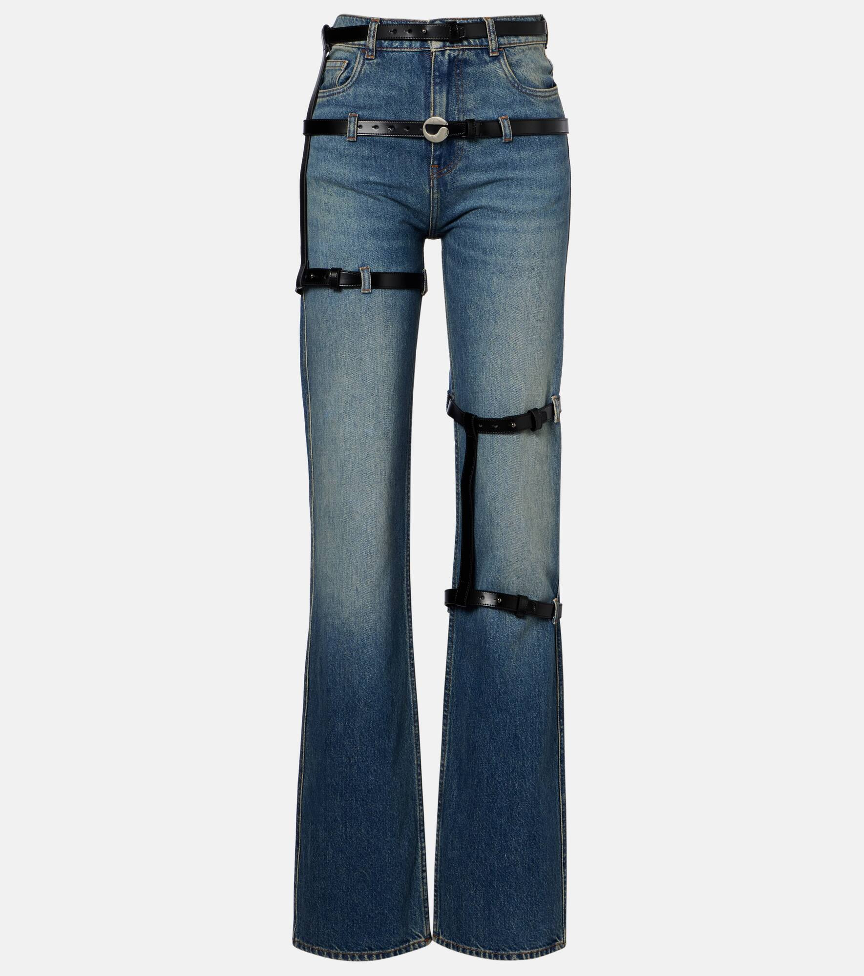 Coperni takes its name after the astronomer Nicolaus Copernicus, whose precise work inspires the brand’s deeply detailed designs. These high-rise straight jeans are distinguished by striking leather belt detailing. Product Details - Material: 100% cotton (organic) - Care instructions: machine wash at 30 degrees - Made in Portugal - Designer color name: Blue Vintage - Item color: blue - Trim: 100% leather - Lining: 50% cotton, 50% polyester - Contains non-textile parts of animal origin - Hardware color: silver - Belt loops - Detachable belt - Pockets: five pockets - Closure: zipper fly, button fastening - Item number: P01090557 Size & Fit - Fits small to size - we recommend trying one size larger - Non-stretchy fabric - Straight leg - High-rise - The model seen in the picture is 178cm-5'10" and wearing a size S