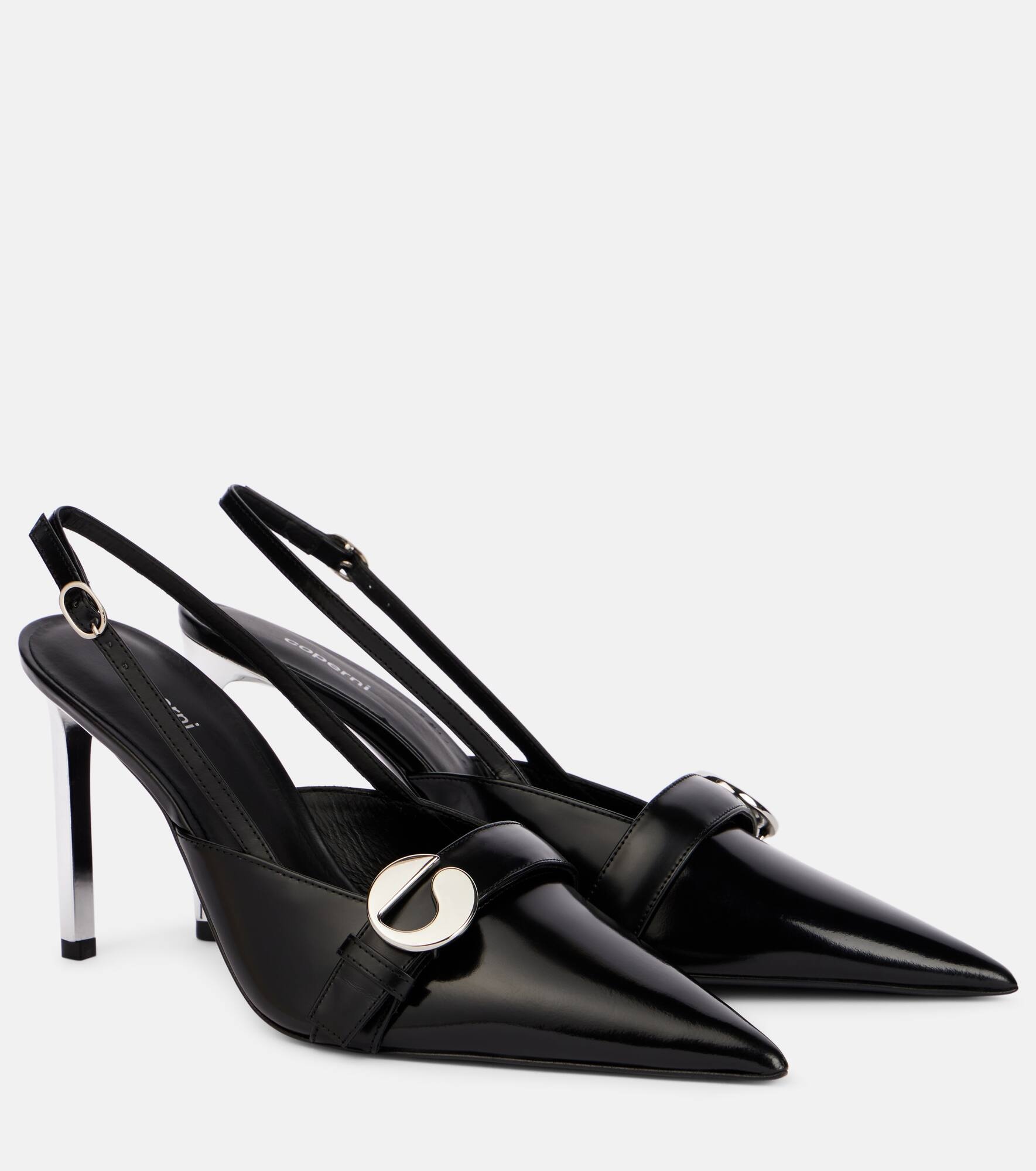 Coperni takes its name from the astronomer Nicolaus Copernicus, whose precise work inspires the brand’s deeply detailed designs. These slingback pumps are crafted from leather and are set atop pencil-thin stiletto heels. Product Details - Upper: leather - Lining: leather - Sole: leather insole and sole - Toe shape: pointed toe - Made in Spain - Includes: shoe box - Designer color name: Black - Item color: black - Closure: buckle fastening - Hardware color: silver - Item number: P01015342 Size & Fit - True to size - Slightly narrow - Half sizes please take the next size up - European sizes - 9,5cm-3.5" heel (size EU 38)