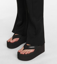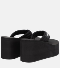 Give summertime ensembles a lift with these black sandals from Coperni. Set on rubber platform wedge soles, they feature logo branding on their thong straps in contrasting white. Style yours with the brand's minimalist suiting. Product Details - Toe shape: round open toe - Upper: fabric - Sole: fabric insole, rubber sole - Made in Spain - Lining: fabric - Designer color name: Black - Item number: P00578240 Size & Fit - True to size - Slightly narrow - Half sizes please take the next size up - European sizes - 5,5cm-2" platform (size EU 38) - 9,5cm-3.5" wedge heel (size EU 38)