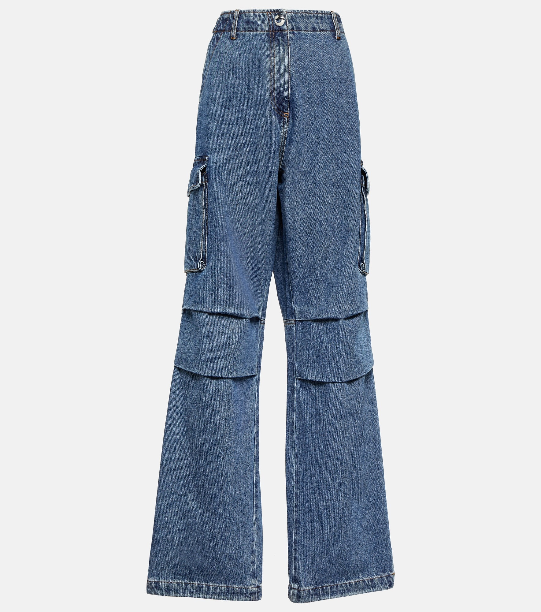 Product Details - Material: 100% cotton - Care instructions: machine wash at 40 degrees - Made in Italy - Designer color name: Washed Blue - Lining: 65% polyester, 35% cotton - Closure: snap-buttoned front, zipper fastening - Pockets: side slit pockets, back pockets, cargo pockets - Item number: P00862439 Size & Fit - Fits large to size - we recommend trying one size smaller - Non-stretchy fabric - Wide-leg - Mid-rise - The model seen in the picture is 178cm-5'10" and wearing a size FR 34