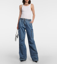 Wide-leg denim cargo pants