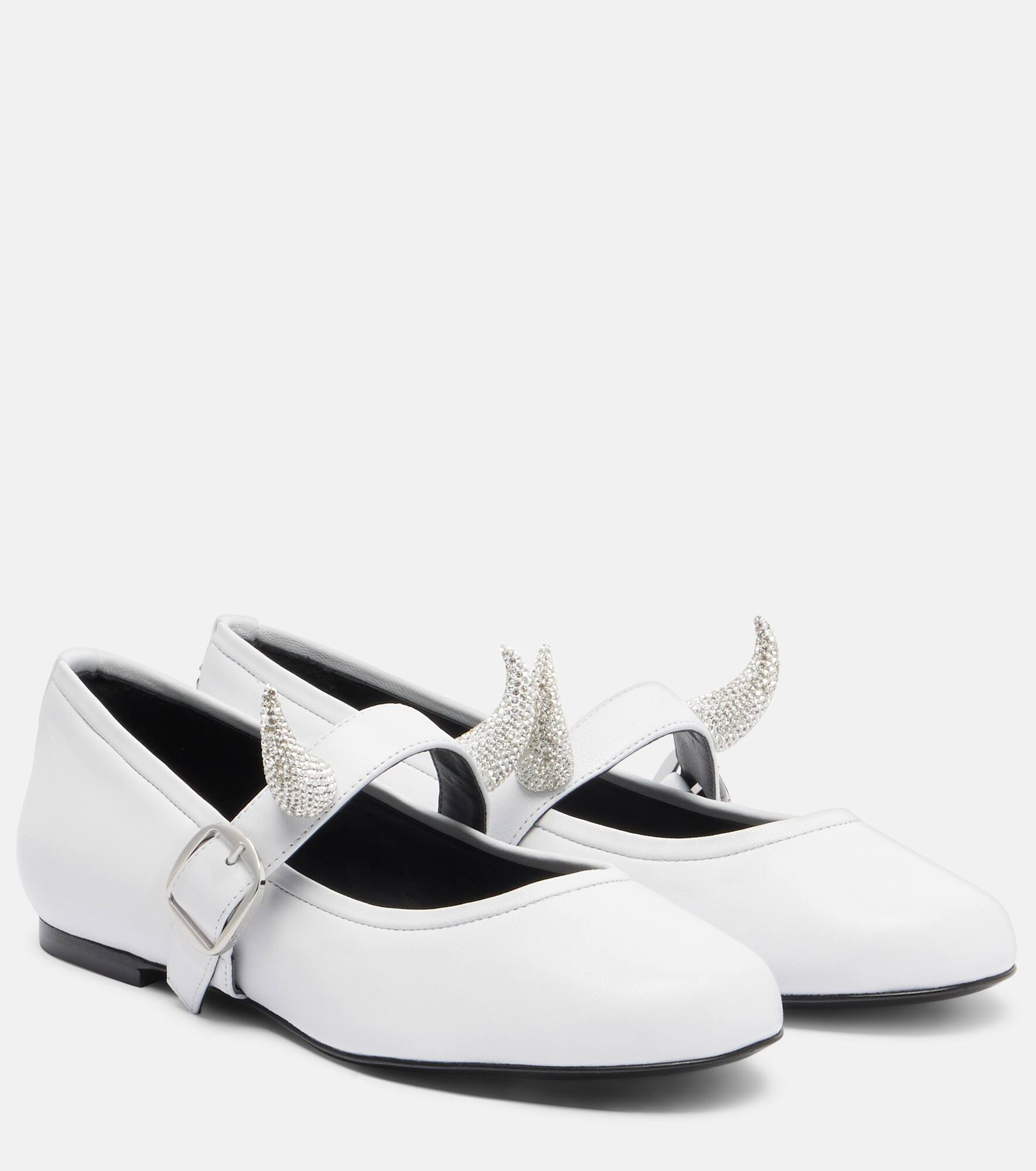 These Disney® x Coperni Mary Jane flats are crafted from supple leather and feature embellished horn details inspired by a famous malevolent fairy. This pair features buckle closures on thick straps and rounded toes for a classic look. Product Details - Upper: calf leather - Lining: calf leather - Sole: leather insole, leather and rubber sole - Toe shape: round toe - Made in Spain - Includes: shoe box - Designer color name: White-Silver - Item color: white - Hardware color: silver - Closure: buckle fastening - Item number: P01090547 Size & Fit - Fits small to size - we recommend trying one size larger - European sizes - 1,5cm-0.5" heel (size EU 38)