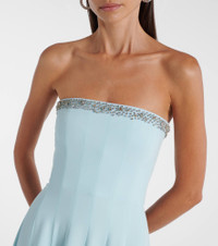 Aldina strapless pleated crystal-embellished crepe midi dress Blue