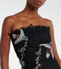 Based in Athens, Costarellos designs ethereal eveningwear that takes inspiration from art of ancient Greece. This lace midi dress is tailored to a flared, strapless silhouette, and the intricate embroidery is adorned with delicate beaded embellishments. Product Details - Material: 90% polyester, 10% rayon - Care instructions: dry clean - Made in Greece - Designer color name: Black - Item color: black - Details: 100% nylon - Lining: 50% polyester, 50% polyamide - Boning - Closure: zipped back - Fully lined - Item number: P01080015 Size & Fit - True to size - Strapless - Internal boned corset for support - Fitted bodice, loose skirt - Non-stretchy fabric - The model seen in the picture is 178cm-5'10" and wearing a size FR 36
