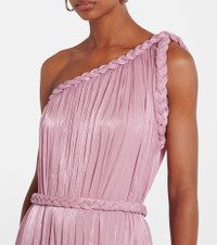 Based in Athens, Costarellos designs ethereal eveningwear that takes inspiration from art of ancient Greece. The Isilda gown is expertly crafted from lightly sparkling lame georgette into a stunning silhouette with a gathered waist, one-shoulder neckline, and intricate braided detailing. Product Details - Material: 100% polyester - Care instructions: dry clean - Made in Poland - Designer color name: Pink 671 - Item color: pink - Detachable belt - Item number: P01058395 Size & Fit - True to size - Loose fit, comes with belt - Non-stretchy fabric - The model seen in the picture is 178cm-5'10" and wearing a size FR 36