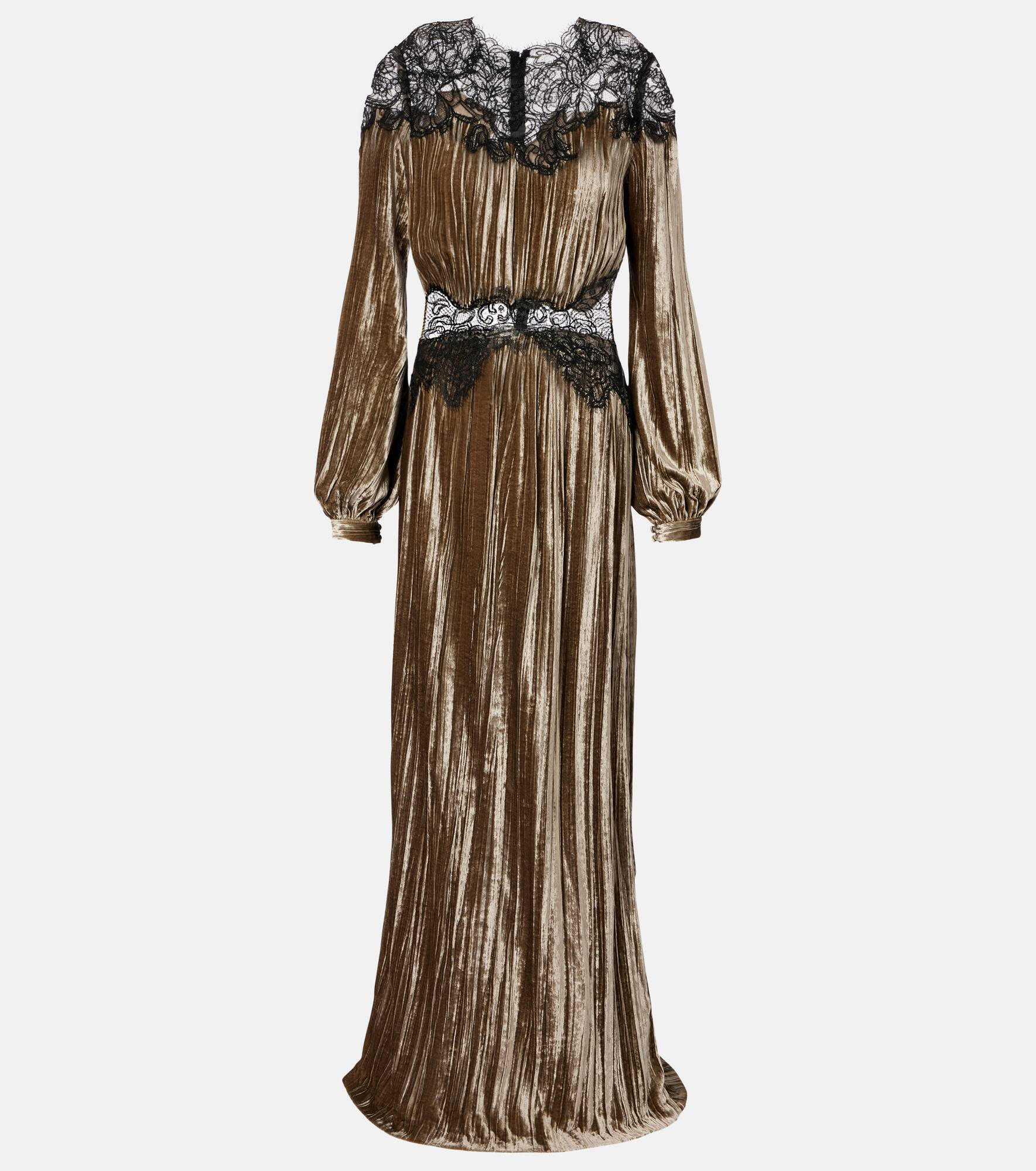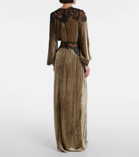 Senna lace-detail pleated maxi dress