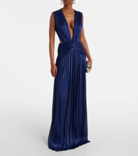 Silla pleated cowl-neck maxi dress