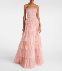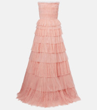 Based in Athens, Costarellos designs ethereal eveningwear that takes inspiration from the art of ancient Greece. Crafted from French tulle and Chantilly lace, the Trissa gown features a plisse style over a tiered skirt and a structured bodice. Product Details - Material: 100% polyamide - Care instructions: dry clean - Made in Greece - Designer color name: Vintage Rose - Item color: pink - Closure: invisible zipper - Item number: P01026241 Size & Fit - True to size - Strapless - Internal boned corset for support - Cinched waist - Non-stretchy fabric - The model seen in the picture is 178cm-5'10" and wearing a size FR 36