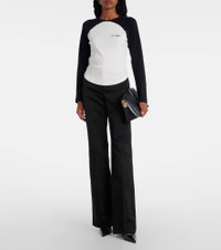 The Circle Contrast T-shirt from Courreges is a casualwear staple that brings a signature touch with its embroidered logo at the front. Crafted from soft cotton jersey, the design boasts a sharp color contrast. Product Details - Material: 100% cotton - Care instructions: machine wash at 30 degrees - Made in Portugal - Designer color name: Heritage White/Black - Item color: white, black - Trim: 100% cotton - Collar: crewneck - Sleeves: raglan - Hem: rounded - Item number: P01072197 Size & Fit - True to size - Cinched waist - Slightly stretchy fabric - Slightly cropped - The model seen in the picture is 178cm-5'10" and wearing a size XS