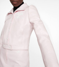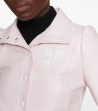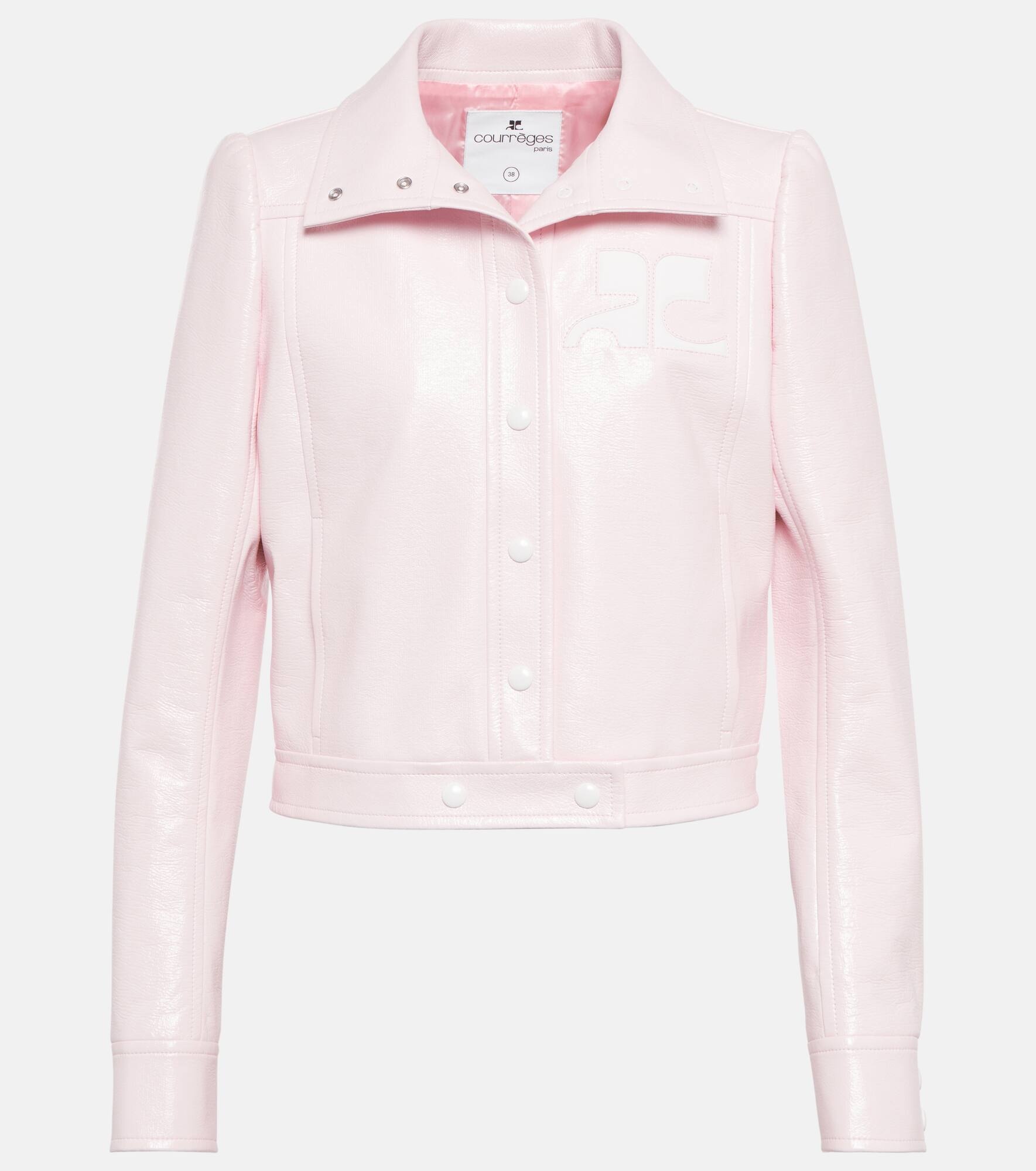 Drawing inspiration from Parisian style, Courreges creates a versatile mix of modern pieces. This coated cotton jacket has a boxy, cropped silhouette with a spread collar, tonal press studs, and a logo motif. Product Details - Made in Slovakia - Closure: snap-buttoned front - Care instructions: specialist clean - Designer color name: Pale Pink - Material: 88% cotton, 10% polyurethane, 2% elastane - Lining: 100% cupro, fully lined - Pockets: internal pocket, side slit pockets - Item number: P00756124 Size & Fit - True to size - Straight fit - Non-stretchy fabric - Slightly cropped - The model seen in the picture is 178cm-5'10" and wearing a size FR 36