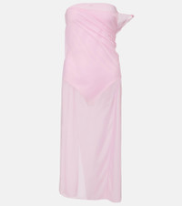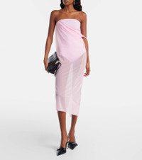 The futurist French fashion house Courreges is rocketing back into orbit with hyper-modern designs. This midi dress is crafted in sheer jersey and layered over a crepe bodysuit detailed with an asymmetric strap. Product Details - Material: 100% polyester - Care instructions: do not wash - Made in Madagascar - Designer color name: Candy Pink - Item color: pink - Material II: 89% polyester, 11% polyurethane - Material III: 100% cotton - Closure: snap-buttoned fastenings, concealed zipper, zipped side, hook fastening - Short vent - Item number: P01082825 Size & Fit - True to size - Sheer - Fitted - Slightly stretchy fabric - Medium-cut leg - slit length 29cm-11.5" - The model seen in the picture is 178cm-5'10" and wearing a size FR 36