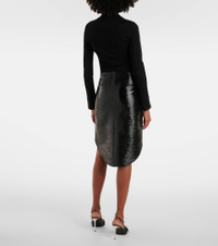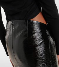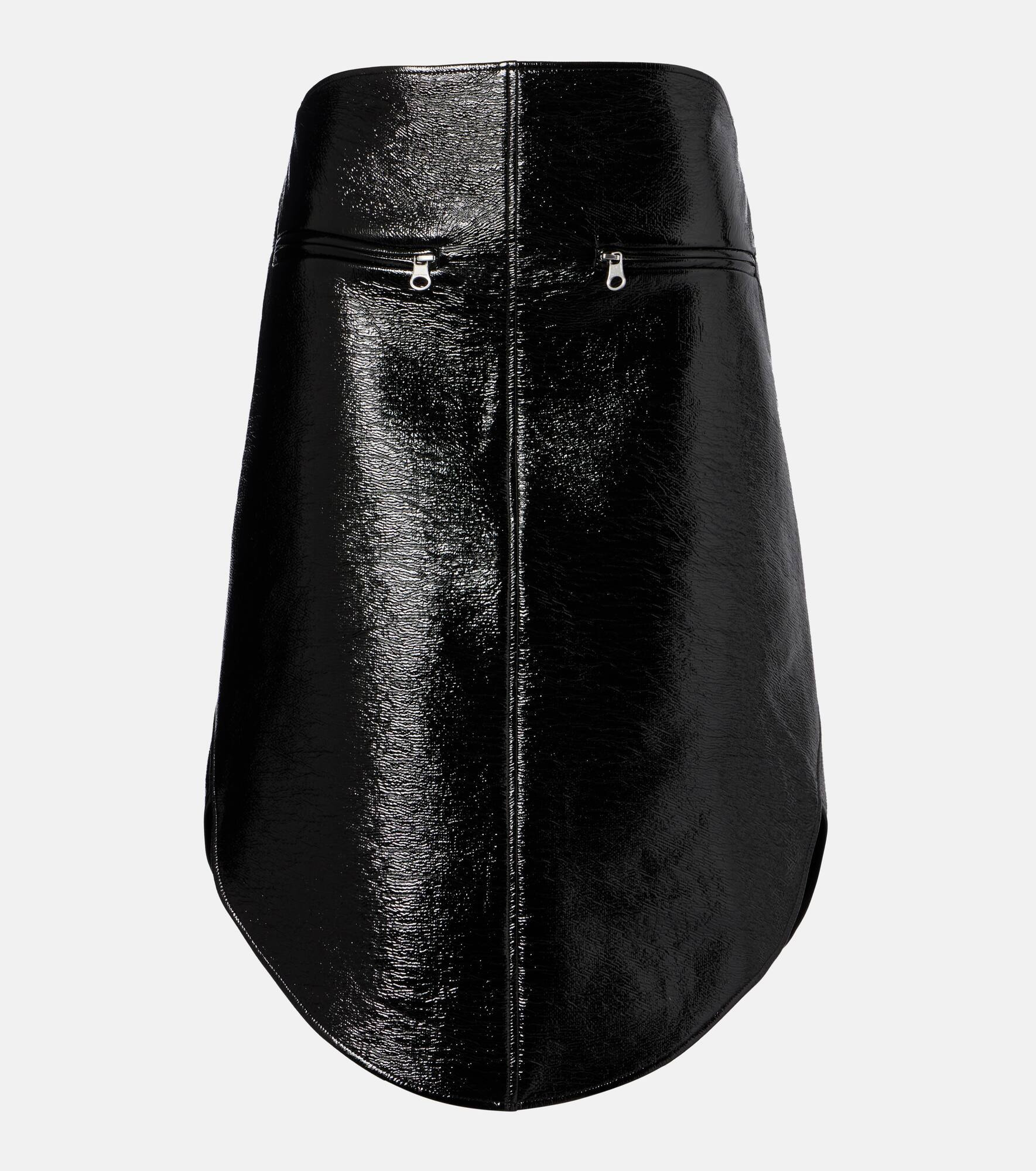 The faux leather midi skirt from Courreges features a glossy finish, curved hem, and two zip pockets at the front –a sculptural silhouette that reflects the brand’s modern designs inspired by space-age style. Product Details - Material: 88% cotton, 10% polyurethane, 2% elastane - Care instructions: do not wash - Made in Portugal - Designer color name: Black - Item color: black - Lining: 100% viscose - Closure: zipper, hook fastening - Pockets: zipped pockets - Hem: rounded - Item number: P01072058 Size & Fit - True to size - Slightly stretchy fabric - The model seen in the picture is 178cm-5'10" and wearing a size FR 36