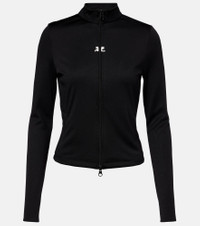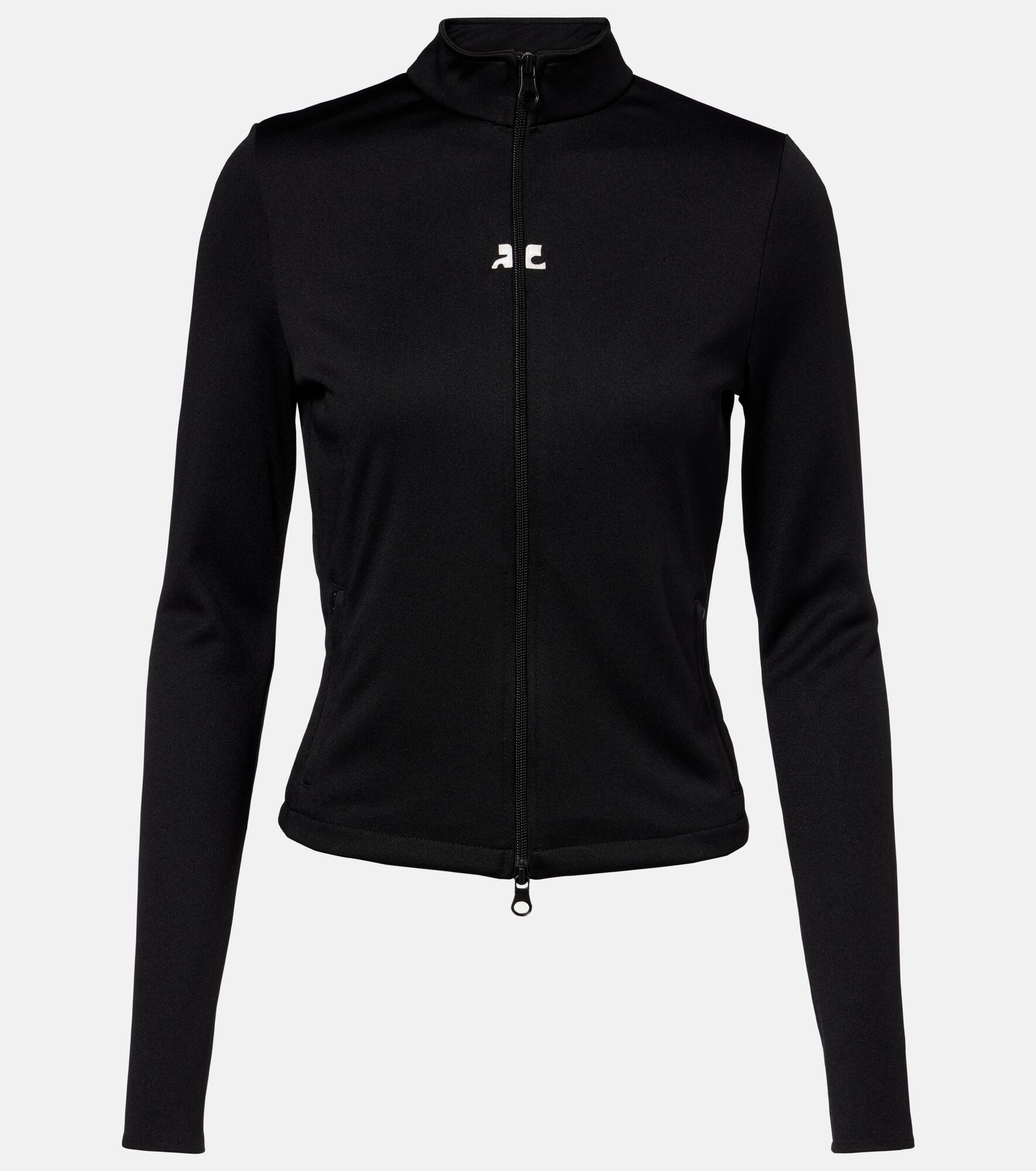 The futurist French fashion house Courreges is rocketing back into orbit with hyper-modern designs rooted in space-age influence. The Interlock jersey track jacket has a zipper that splits the middle of the embroidered logo. Product Details - Material: 100% polyester - Care instructions: machine wash at 30 degrees - Made in Tunisia - Designer color name: Black - Item color: black - Pocket lining: 100% polyester - Collar: mockneck - Closure: two-way zipped front - Pockets: zipped pockets - Item number: P01072198 Size & Fit - True to size - For a looser fit, we recommend taking one size up - Fitted - Non-stretchy fabric - Falls to the hip - The model seen in the picture is 178cm-5'10" and wearing a size XS