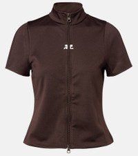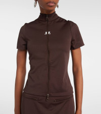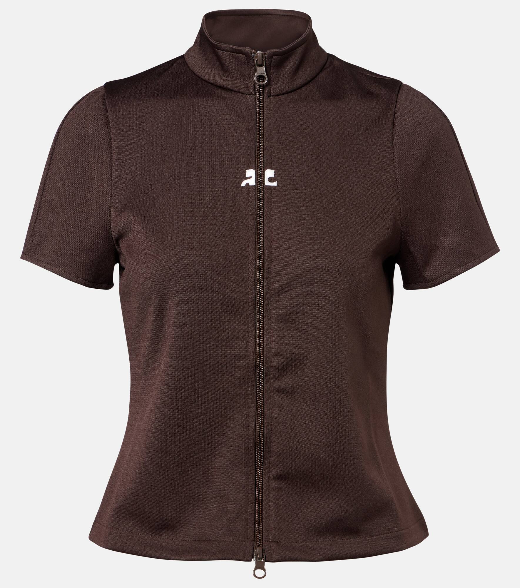 Founded in 1961 by Andre Courreges, the eponymous label is celebrated for its contemporary spirit. This top is crafted from soft interlock jersey, featuring a zip-up front, mockneck, and the brand’s signature embroidered logo. Product Details - Material: 100% polyester - Care instructions: machine wash at 30 degrees - Made in Tunisia - Designer color name: Chocolate - Item color: brown - Closure: two-way zipped front - Collar: mockneck - Item number: P01072193 Size & Fit - True to size - Cinched waist - Slightly stretchy fabric - Slightly cropped - The model seen in the picture is 178cm-5'10" and wearing a size XS