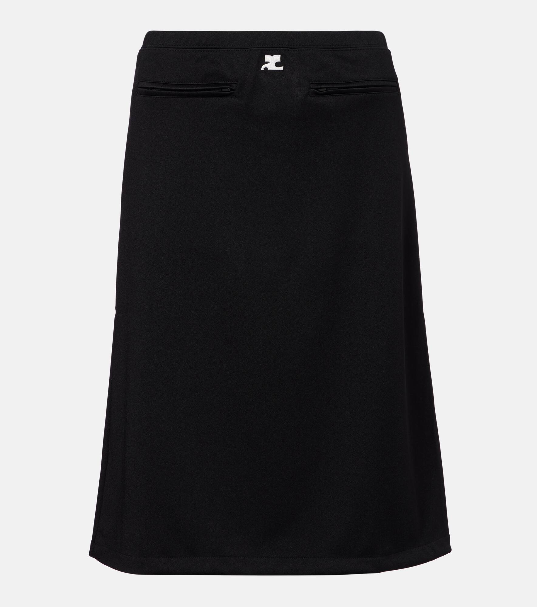The futurist French fashion house Courreges is rocketing back into orbit with hyper-modern designs rooted in space-age influence. Primed for effortless everyday ensembles, the Interlock Tracksuit midi skirt features two welt pockets and logo detailing at the waistline. Product Details - Material: 100% polyester - Care instructions: machine wash at 30 degrees - Made in Tunisia - Designer color name: Black - Item color: black - Pocket lining: 100% polyester - Elasticated waistband - Pockets: zipped pockets - Item number: P01072095 Size & Fit - True to size - Elasticated waist - Stretchy fabric - The model seen in the picture is 178cm-5'10" and wearing a size XS