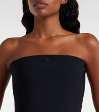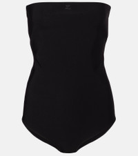The French fashion house Courreges is rocketing back into orbit with modern designs rooted in space-age influence. Crafted from jersey, this strapless bodysuit features an alluring lingerie detail at the back, with a snap and hook fastening. Product Details - Material: 86% viscose, 10% polyamide, 4% elastane - Care instructions: dry clean - Made in Italy - Designer color name: Black - Item color: black - Material II: 92% polyester, 8% elastane - Closure: snap-buttoned fastenings, hook-fastening back - Item number: P01082818 Size & Fit - True to size - Strapless - Internal bra with wire support at the sides - Fitted - Slightly stretchy fabric - Medium-cut leg - The model seen in the picture is 178cm-5'10" and wearing a size XS