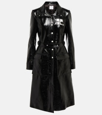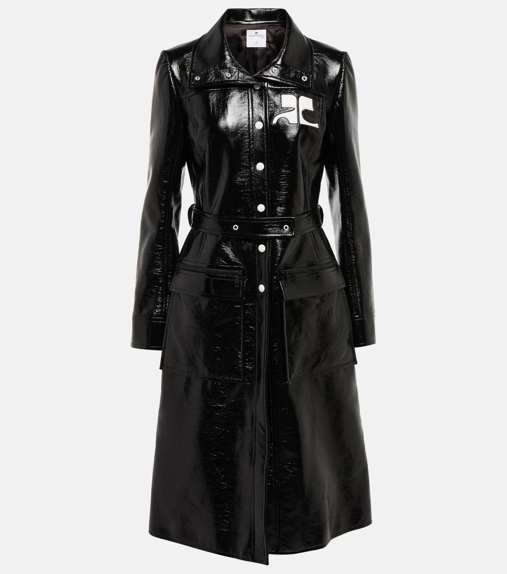 Embrace your edgy side in this black trench coat from Courreges. Featuring a logo patch on the chest, this cotton-blend design has both zip and flap pockets and a detachable belt. Product Details - Made in Slovakia - Material II: 55% polyamide, 25% polyurethane, 20% elastane - Closure: snap-buttoned front - Designer color name: Black - Material: 88% cotton, 10% polyurethane, 2% elastane - Lining: 100% cupro - Pockets: zipped pockets - Care instructions: do not wash - Item number: P00756128 Size & Fit - Fits small to size - we recommend trying one size larger - Close fit at the shoulders - Loose fit, comes with belt - The model seen in the picture is 178cm-5'10" and wearing a size FR 38