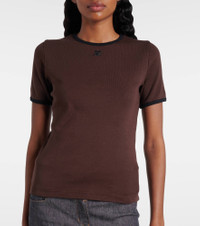 The futurist French fashion house Courreges is rocketing back into orbit with hyper-modern designs rooted in space-age influence. This fitted T-shirt is crafted from cotton and embroidered with the brand's logo. Product Details - Material: 100% cotton - Care instructions: machine wash at 30 degrees - Made in Portugal - Designer color name: Chocolate/Black - Item color: brown, black - Trim: 100% cotton - Item number: P01056583 Size & Fit - True to size - Fitted - Stretchy fabric - Falls to the hip - The model seen in the picture is 178cm-5'10" and wearing a size XS
