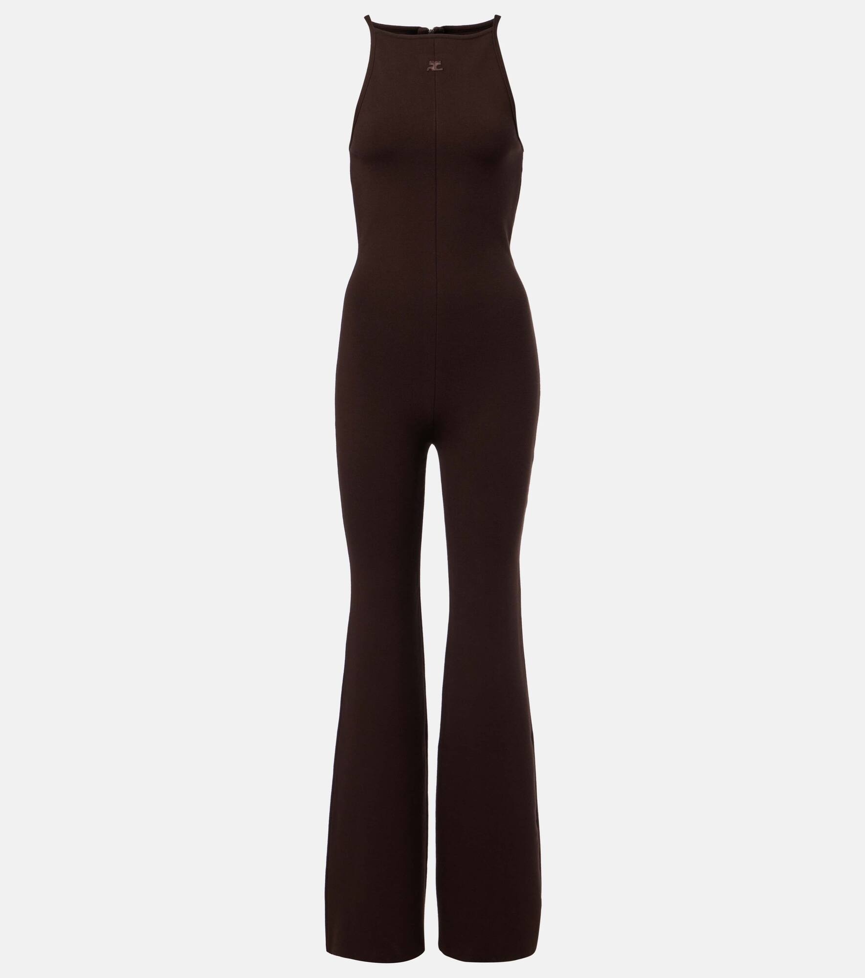 Sophisticated and effortless, this jumpsuit from Courreges is primed to become your wardrobe favorite. Enriched with tonal logo detailing, this style features a fitted top and flared legs. Product Details - Material: 70% viscose, 30% polyester - Care instructions: hand wash - Made in Bulgaria - Designer color name: Chocolate - Item color: brown - Closure: zipped back - Item number: P01056589 Size & Fit - True to size - Fitted - Stretchy fabric - Slim-leg with a flared hem - The model seen in the picture is 178cm-5'10" and wearing a size XS