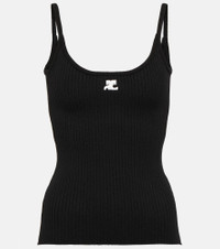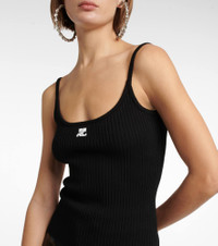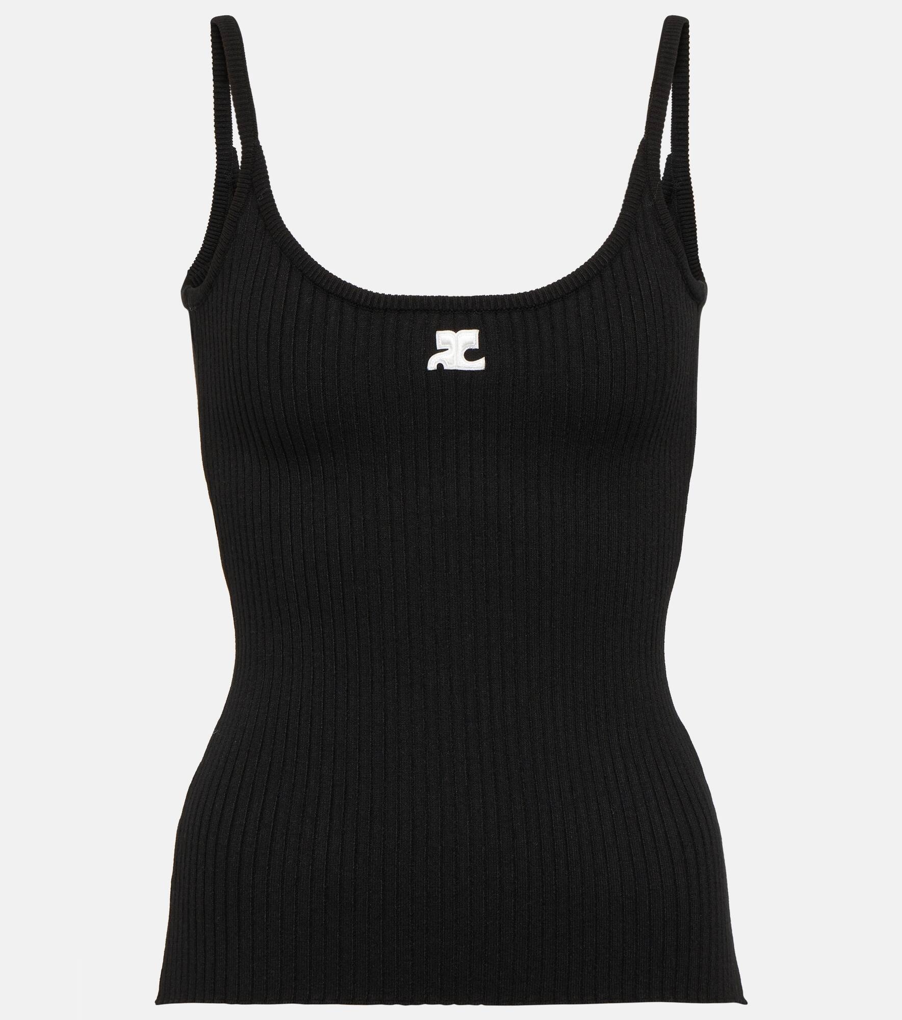 This tank top from Courrèges is made in a ribbed-knit silhouette with bound trims. It features the house logo stitched in front. Product Details - Material: 30% polyester, 70% viscose - Care instructions: hand wash - Made in Bulgaria - Designer color name: Black - Item number: P00756133 Size & Fit - True to size - Fitted - Mid-weight material - Falls to the hip - The model seen in the picture is 178cm-5'10" and wearing a size XS