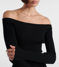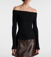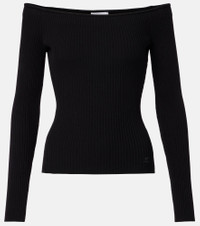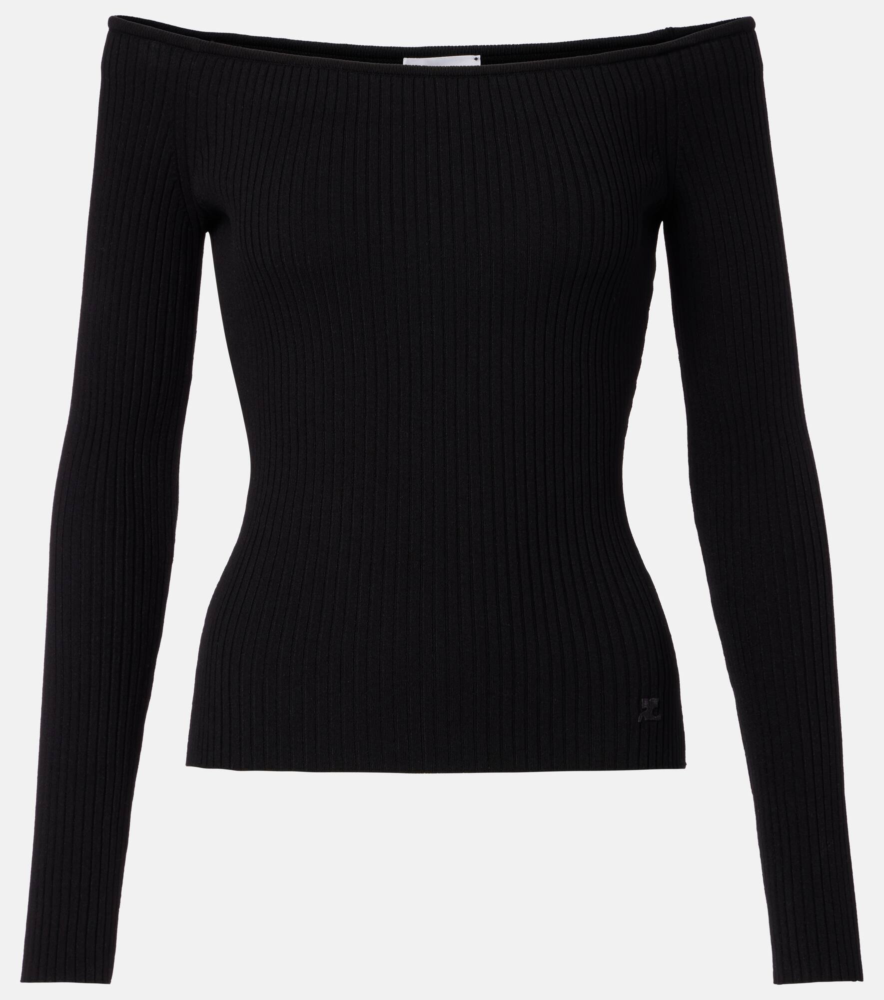 The futurist French fashion house Courreges is rocketing back into orbit with hyper-modern designs rooted in space-age influence. This ribbed-knit top has an off-shoulder, fitted silhouette. Product Details - Material: 70% viscose, 30% polyester - Care instructions: hand wash - Made in Bulgaria - Designer color name: Black - Item color: black - Item number: P01072204 Size & Fit - True to size - Off-the-shoulder - Fitted - Stretchy fabric - Slightly cropped - The model seen in the picture is 178cm-5'10" and wearing a size XS