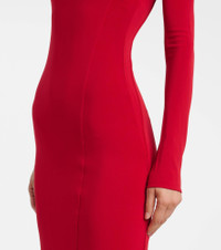 The futurist French fashion house Courreges is rocketing back into orbit with hyper-modern designs rooted in space-age influence. This crepe maxi dress has a one-shoulder silhouette that leads into a layered single-sleeved look. Product Details - Material: 95% viscose, 5% elastane - Care instructions: dry clean - Made in Portugal - Designer color name: Ruby - Item color: red - Long vent - Item number: P01082820 Size & Fit - True to size - Fitted - Stretchy fabric - slit length 50cm-19.5" - The model seen in the picture is 178cm-5'10" and wearing a size XS