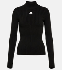 Reedition embroidered ribbed-knit turtleneck sweater Black