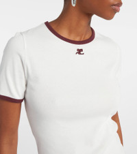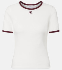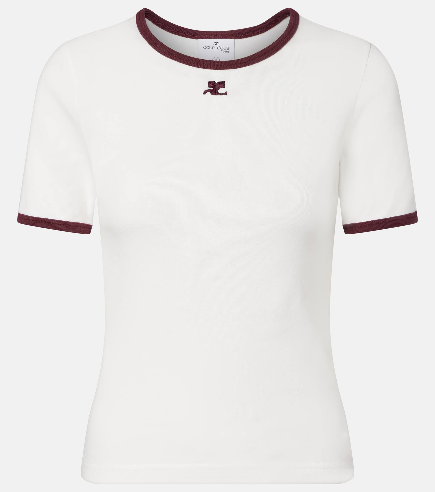 The futurist French fashion house Courreges is rocketing back into orbit with hyper-modern designs rooted in space-age influence. Crafted from pure cotton, the Signature T-shirt features contrast trims and logo detailing. Product Details - Material: 100% cotton - Care instructions: machine wash at 30 degrees - Made in Portugal - Designer color name: Heritage White/Burgundy - Item color: white - Trim: 100% cotton - Collar: crewneck - Item number: P01082814 Size & Fit - True to size - Cinched waist - Non-stretchy fabric - Slightly cropped - The model seen in the picture is 178cm-5'10" and wearing a size XS