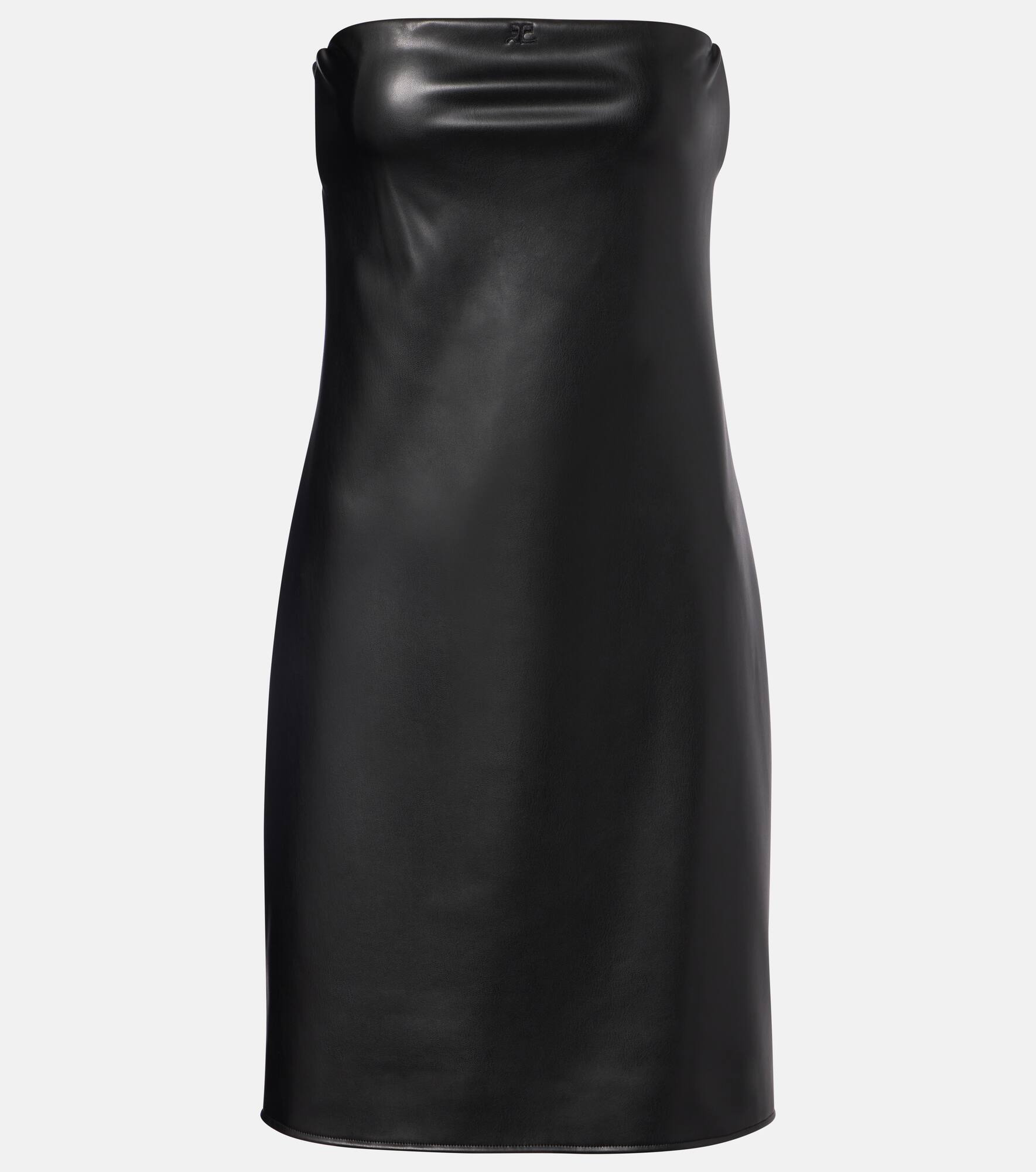 Courreges is rocketing back into orbit with hyper-modern styles rooted in space-age influence. This minidress is designed with a strapless silhouette and finished with a front logo detail and a back hook fastening. Product Details - Material: 54% polyurethane, 46% polyester - Care instructions: hand wash cold - Made in France - Designer color name: Black - Item color: black - Material II: 79% polyamide, 21% elastane - Item number: P01082822 Size & Fit - True to size - For larger bust sizes we recommend taking one size up - Low back - Strapless - Cinched waist - Slightly stretchy fabric - The model seen in the picture is 178cm-5'10" and wearing a size XS