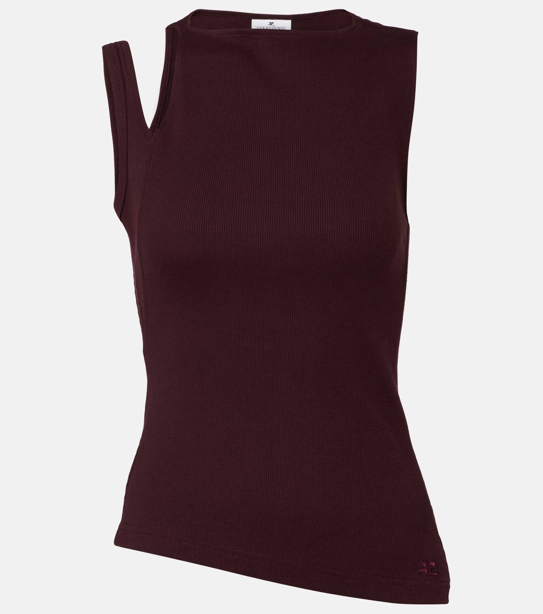 The futurist French fashion house Courreges is rocketing back into orbit with hyper-modern designs rooted in space-age influence. Knit from cotton, the Transverse '90s top features a striking asymmetric neckline. Product Details - Material: 98% cotton, 2% elastane - Care instructions: machine wash at 30 degrees - Made in Portugal - Designer color name: Burgundy - Item color: burgundy - Item number: P01082824 Size & Fit - True to size - Fitted - Stretchy fabric - Falls to the hip - The model seen in the picture is 178cm-5'10" and wearing a size XS