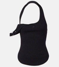 The futurist French fashion house Courreges is rocketing back into orbit with hyper-modern designs rooted in space-age influence. The Undressed 90's top is made from elasticated ribbed-knit cotton and features a halterneck. Product Details - Material: 98% cotton, 2% elastane - Care instructions: machine wash at 30 degrees - Made in Portugal - Designer color name: Black - Item color: black - Collar: crewneck - Hardware color: silver - Hem: rounded - Item number: P01072089 Size & Fit - True to size - Fitted - Slightly stretchy fabric - Slightly cropped - The model seen in the picture is 178cm-5'10" and wearing a size XS