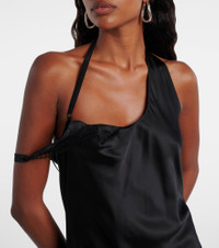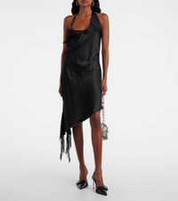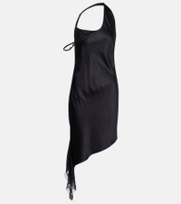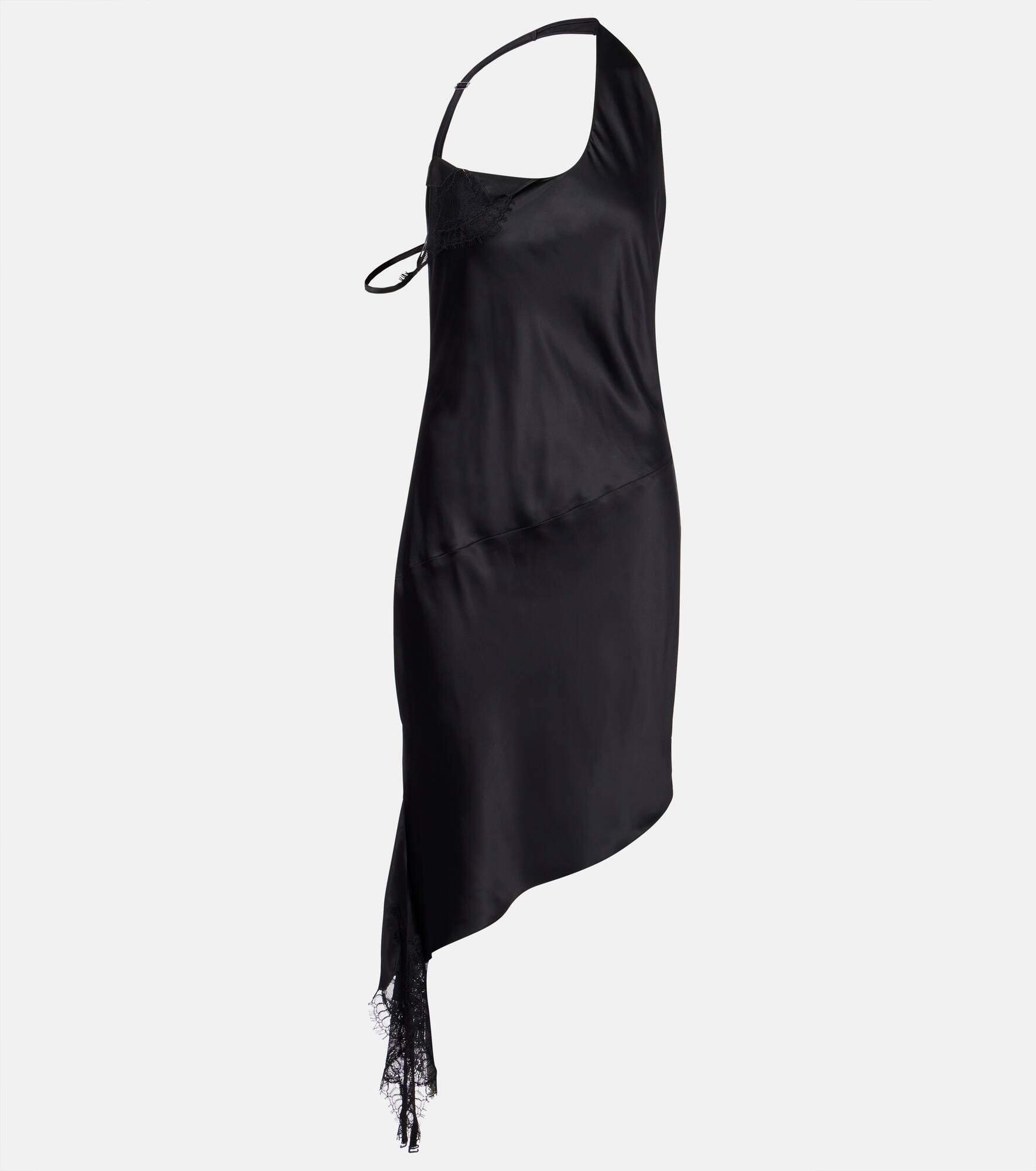 The futurist French fashion house Courreges is rocketing back into orbit with hyper-modern designs rooted in space-age influence. The Undressed satin minidress boasts delicate lace trims and is finished with an asymmetric hem and a side slit. Product Details - Material: 94% viscose, 6% elastane - Care instructions: dry clean - Made in Italy - Designer color name: Black - Item color: black - Lace: 90% polyamide, 10% elastane - Details: 54% viscose, 46% polyamide - Adjustable shoulder straps - Item number: P01072061 Size & Fit - True to size - Low back - Cinched waist - Non-stretchy fabric - The model seen in the picture is 178cm-5'10" and wearing a size FR 36