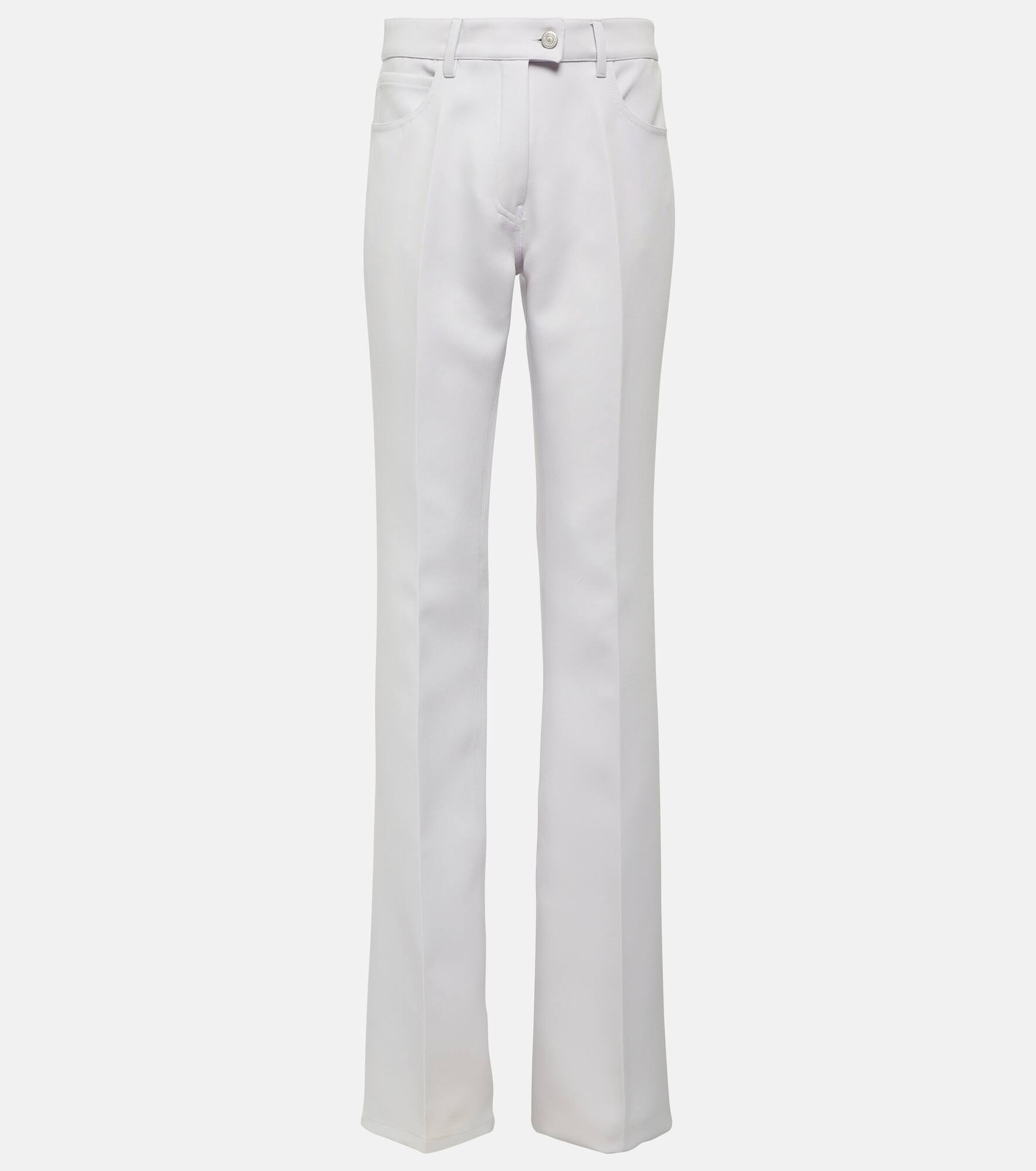 Product Details - Material: 83% polyester, 17% acetate - Care instructions: dry clean - Made in Serbia - Designer color name: Mist - Lining: 100% cupro - Closure: zipper fly, button and hook fastenings - Pockets: five pockets - Belt loops - Fit: flared - Item number: P00933145 Size & Fit - True to size - Non-stretchy fabric - Slim-leg with a flared hem - The model seen in the picture is 178cm-5'10" and wearing a size FR 36