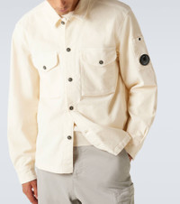 Made from a cotton blend, this overshirt from C.P. Company features two buttoned pockets and a pointed collar. This style is finished with the inimitable lens detail, which was originally designed to allow wearers to see their watches. Product Details - Material: 97% cotton, 3% elastane - Care instructions: machine wash at 30 degrees - Made in Tunisia - Designer color name: Pistachio Shell - Item color: beige - Collar: classic (Straight point) - Closure: buttoned front - Pockets: flap chest pockets, sleeve pocket - Item number: P01061563 Size & Fit - True to size - Without pleats in the back - Straight fit - Non-stretchy fabric - Falls to the hip - Height of model is 188cm-74" and wears a size L