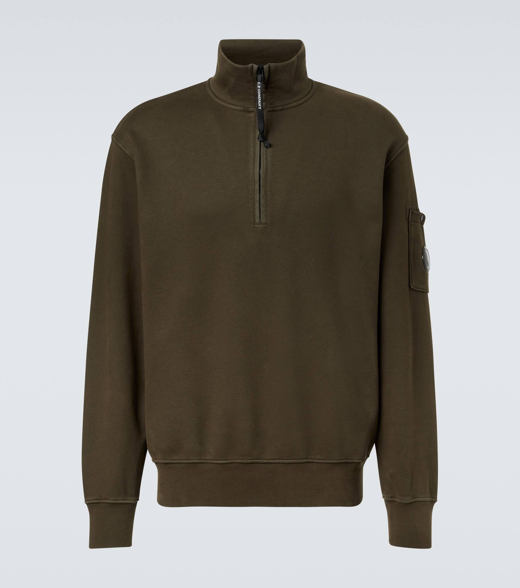 Crafted from soft cotton, this sweatshirt from C.P. Company features a half-zip closure and ribbed trims. The style is finished with the inimitable lens detail, which was originally designed to allow wearers to see their watches. Product Details - Material: 100% cotton - Care instructions: machine wash at 30 degrees - Made in Turkey - Designer color name: Ivy Green - Item color: green - Closure: partially zipped front - Cuff: ribbed - Hem: ribbed - Item number: P01061592 Size & Fit - True to size - Straight fit - Slightly stretchy fabric - Falls to the hip - Height of model is 192cm-75.5" and wears a size L
