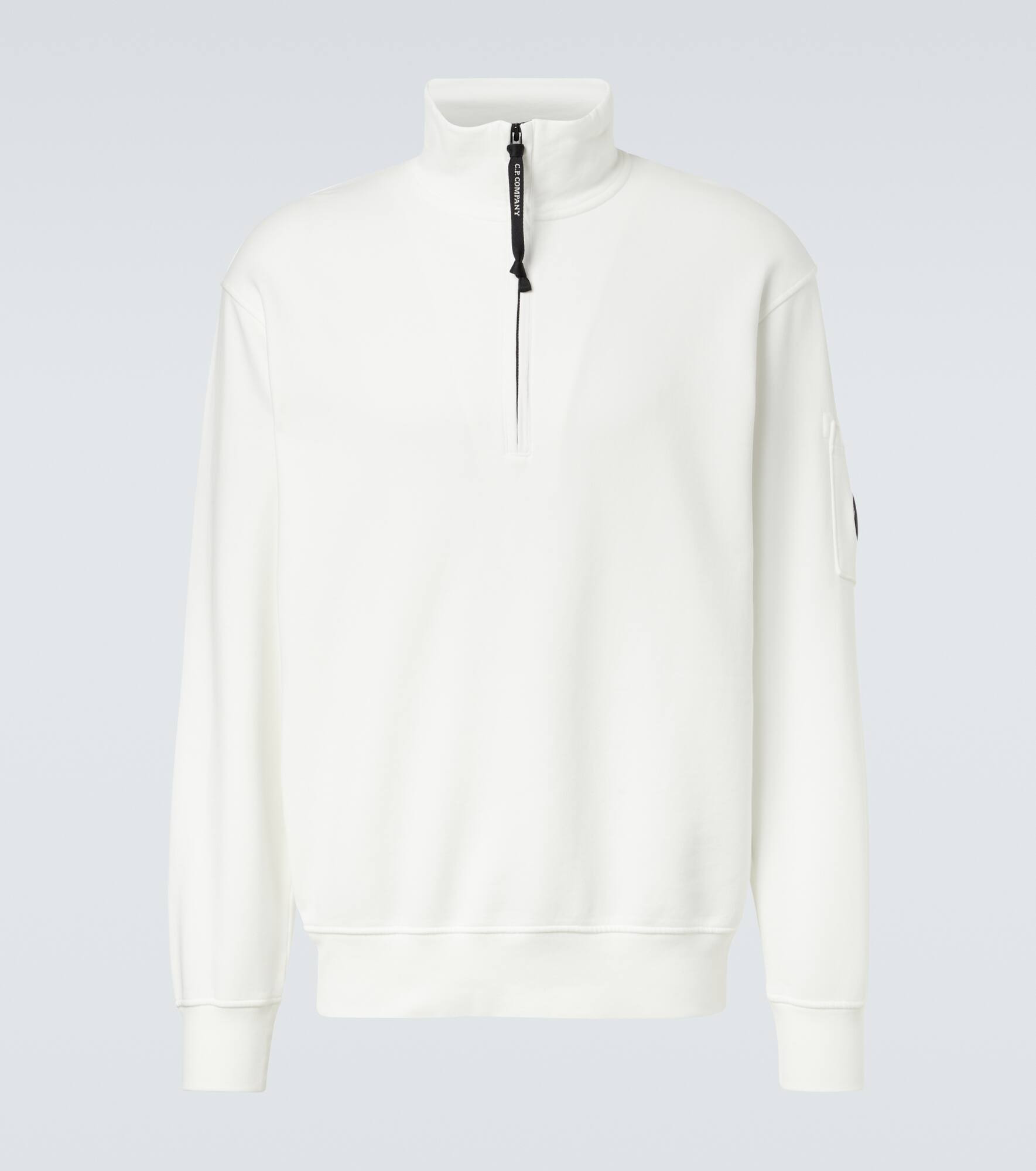 Crafted from soft cotton, this sweatshirt from C.P. Company features a half-zip closure and ribbed trims. The style is finished with the inimitable lens detail, which was originally designed to allow wearers to see their watches. Product Details - Material: 100% cotton - Care instructions: machine wash at 30 degrees - Made in Turkey - Designer color name: Gauze White - Item color: white - Collar: turtleneck - Closure: partially zipped front - Cuff: ribbed - Hem: ribbed - Item number: P01061553 Size & Fit - True to size - Designed for a loose fit - Stretchy fabric - Falls to the hip - Height of model is 192cm-75.5" and wears a size L