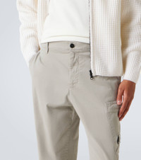 Made from slightly stretchy cotton sateen, these C.P. Company cargo pants are equipped with multiple pockets, embodying utilitarian aesthetics. This style is finished with the inimitable lens detail, which was originally designed to allow wearers to see their watches. Product Details - Material: 98% cotton, 2% elastane - Care instructions: machine wash at 30 degrees - Made in Romania - Designer color name: London Fog - Item color: gray - Hardware color: black - Closure: zip and button fastening - Pockets: slant pockets, cargo pockets, back pockets - Belt loops - Fit: regular - Item number: P01061588 Size & Fit - True to size - Non-stretchy fabric - Straight leg - Height of model is 188cm-74" and wears a size 50