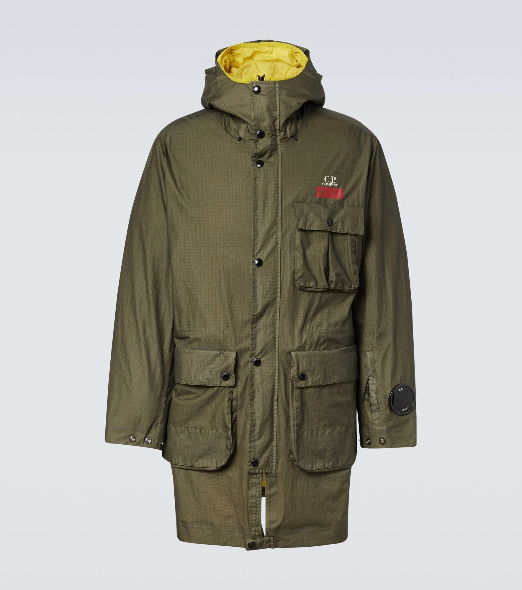 C.P. Company is a leading figure in Italian sportswear. The Mille down jacket is complete with the brand's signature Goggles, a functional asset embedded into the adjustable hood. Product Details - Material: 100% polyamide - Care instructions: machine wash at 30 degrees - Made in China - Designer color name: Capers - Item color: green - Lining: 100% polyamide - Filling: 90% down, 10% feathers - Contains non-textile parts of animal origin - Drawstring hood - Cuff: buttoned - Pockets: utility chest pocket, flap pockets, sleeve pocket, internal pockets - 2-layer shell - Closure: zipper, snap-button fastenings - Specifications: windproof, breathable, water-resistant - Item number: P01078483 Size & Fit - True to size - Loose fit, drawstring waist - Non-stretchy fabric - Falls below the hip - The model in the picture is 185cm-6'1" and wearing a size L