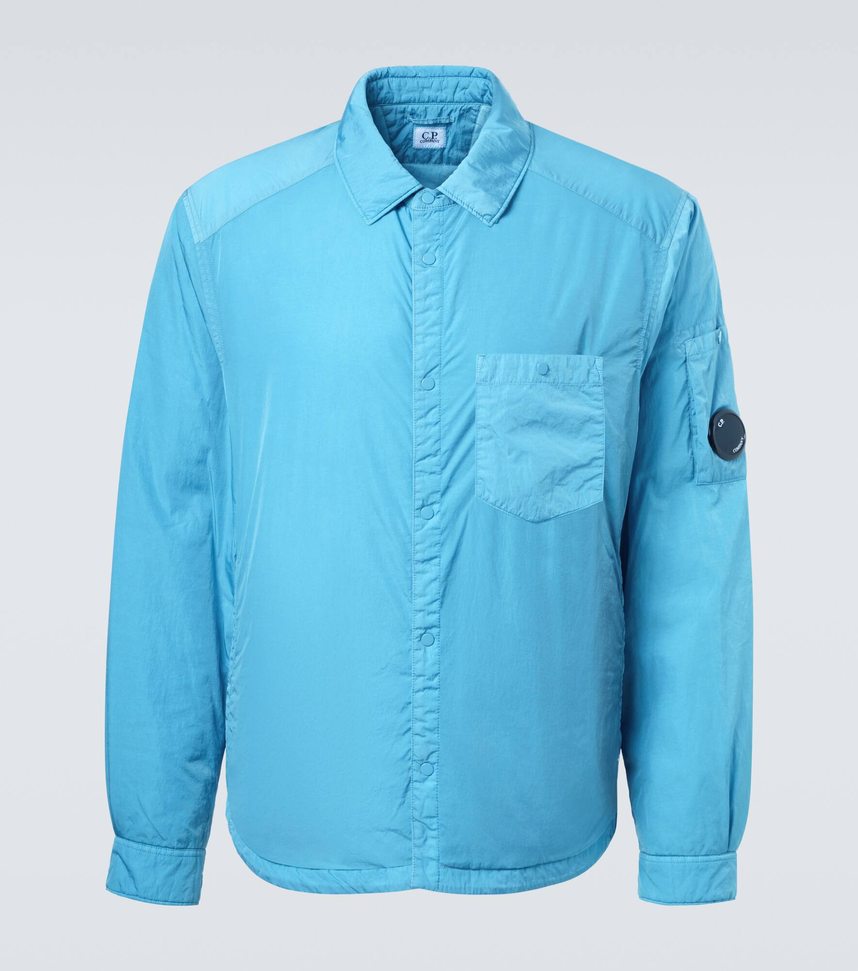 This C.P. Company raincoat combines protection and style, featuring a weatherproof fabric and a classic collar. Its design is finished with the inimitable lens detail, which was originally designed to allow wearers to see their watches. Product Details - Material: 100% polyamide - Care instructions: machine wash at 30 degrees - Made in China - Designer color name: Aegean Blue - Item color: blue - Lining: 100% polyamide - Filling: 100% polyester - Closure: buttoned placket - Pockets: side slit pockets, internal pocket, angled chest pocket - Cuff: buttoned - Collar: classic (Straight point) - Item number: P01061561 Size & Fit - True to size - Straight fit - Non-stretchy fabric - Falls to the hip - Height of model is 188cm-74" and wears a size L