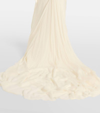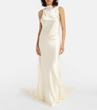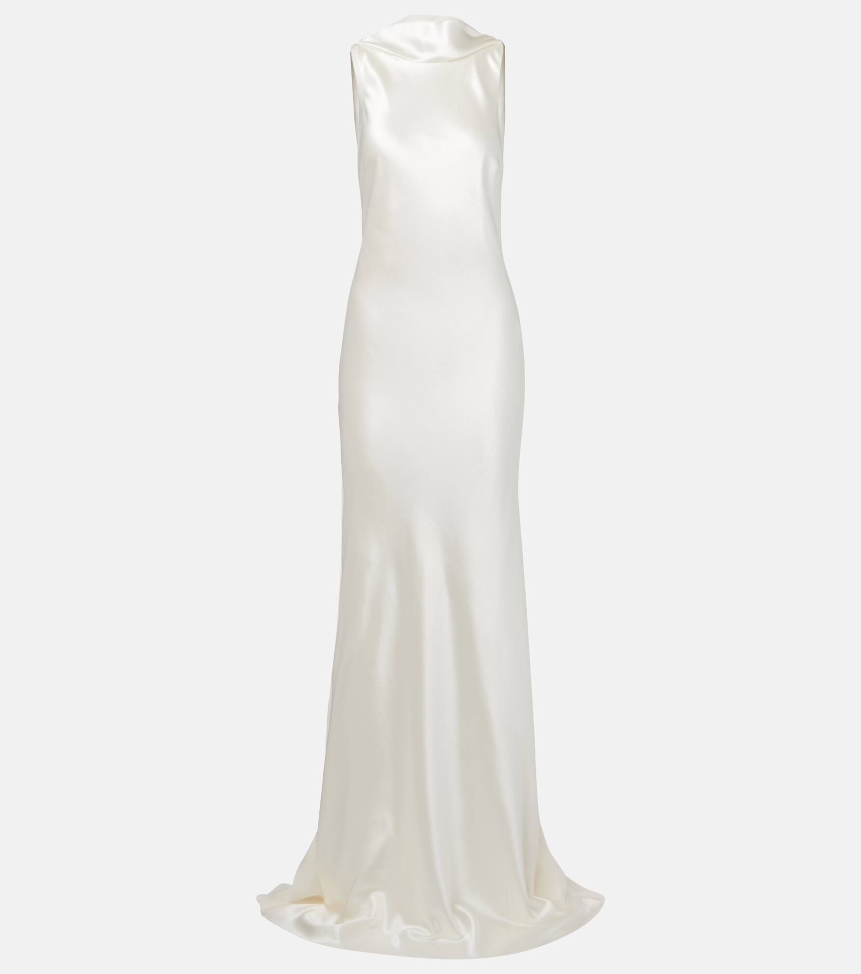 Arlo open-back silk chiffon-trimmed silk and wool-blend satin gown Off-white