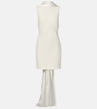 Modern brides can rely on Danielle Frankel for one-of-a-kind creations that feel both timeless and directional. Cut on the bias from a wool-blend fabric, the Mimi minidress boasts a high neckline with a lustrous drape detail that falls into a sophisticated open back. Product Details - Material: 60% wool, 39% viscose, 1% silk - Care instructions: dry clean - Made in the USA - Designer color name: Pearl - Item color: white - Material II: 51% silk, 49% viscose - Lining: 100% polyester - Closure: concealed zipped back - Item number: P01129967 Size & Fit - Fits large to size - we recommend trying one size smaller - Low back - Fitted - Loose outer layer - Non-stretchy fabric - The model seen in the picture is 178cm-5'10" and wearing a size US 0