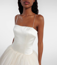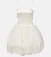 Modern brides can rely on Danielle Frankel for one-of-a-kind creations that feel both timeless and directional. The Sadie minidress is crafted from wool and silk with a drop waist, silk taffeta and soft tulle bubble skirt, and internal corset. Product Details - Material: 51% wool, 49% silk - Care instructions: dry clean - Made in the USA - Color: white - Designer color name: Pearl - Item color: white - Material II: 100% silk - Trim: 100% polyester - Lining: 100% polyester - Closure: concealed zipped back - Boning - Item number: P01144479 Size & Fit - Fits small to size - we recommend trying one size larger - Strapless - Internal boned corset for support - Fitted bodice, loose skirt - Non-stretchy fabric - The model seen in the picture is 178cm-5'10" and wearing a size US 2